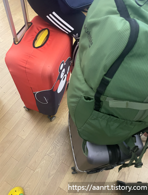 캐리어분실의 위험도 컸으나 누가 봐도 눈에 띄는 커버로 인하여 분실은 일어나지 않았습니다.