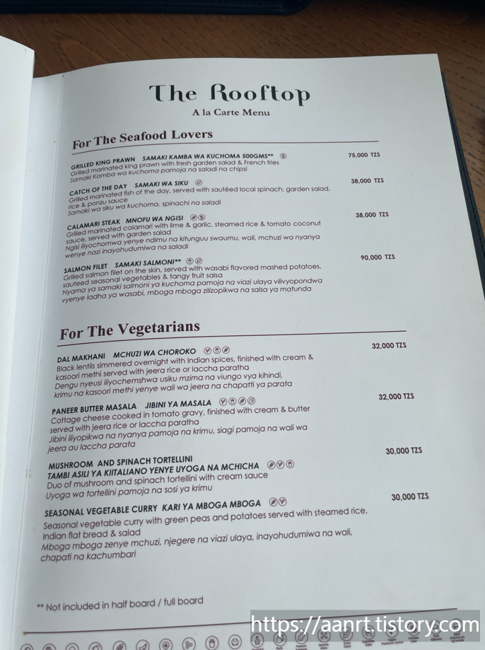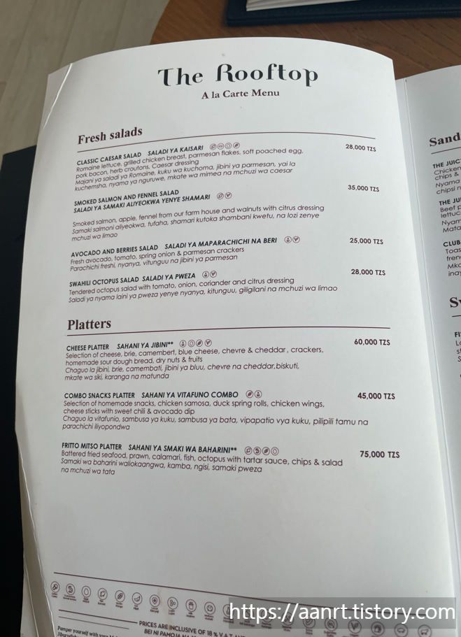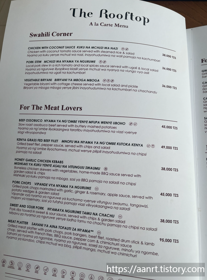 그란 멜리아 아루샤 호텔(Gran Melia Arusha) 조식 메뉴